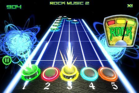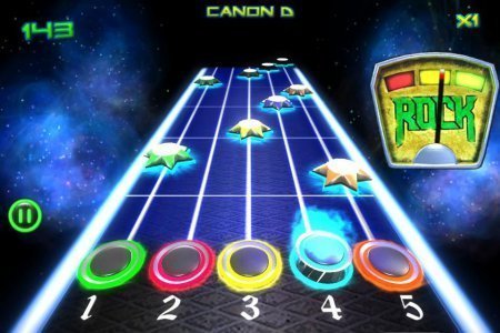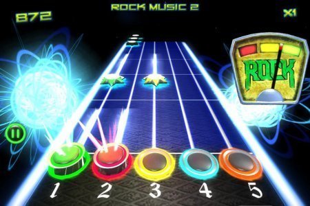 Rock vs Guitar Legends 2015 – музыкальная игрушка для тех кто любит рок, в ней тебе нужно играть на гитаре виртуального типа. На грифе самой гитары размещены цветные кнопочки, твоей целью будет непременно их нажимать, когда будут приближаться звездочки такого же цвета. С каждым верным нажатием на кнопочку у тебя будет выходить мелодия, и вот продли ее подольше. Тренируй собственные пальчики и конечно же рефлексы, играясь в проставленную игру и насладись хорошей музыкой, не пропуская цветные звезды, которые приближаются. Стремись нажать верно на кнопки, к которым идут звезды, не упустив ни одной, чтоб не уйти от ритма. Игрушка сохраняет для тебя двадцать семь замечательных музыкальных композиций в тематике рок с неоновой графикой. Игрушка не русифицирована.