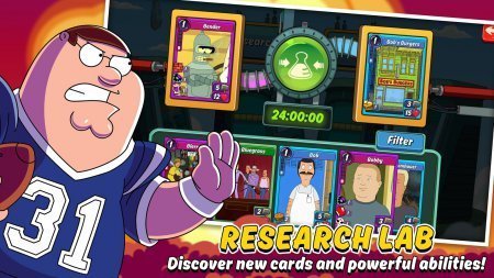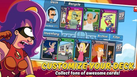 Animation Throwdown: TQFC – стандартная карточная коллекция игрушек в которой основа линии сюжета лежит пять самых известных мультипликационных шоу к примеру как - AMERICAN DAD, BOB'S BURGERS, FUTURAMA, KING OF THE HILL и FAMILY GUY. Тебе будет необходимо использовать карты, которые с героями, которые полюбились всем и принимать участие в настольных противостояниях, улучшая колоду и разрабатывая совершенно бесконечные комбинации. Само собой, создатели не забыли и про режим онлайн, в нем ты способен бросит вызов сотни пользователям с различных кусочков мира. Еще доступна и сингл компания, поделенная на двадцать пять разделов, преодолевая которые ты также способен смотреть главные эпизоды из такого шоу. Представленная игрушка понравиться не только тем, кто любит игры карточного типа, но и фанатам выше указанных мультиков.