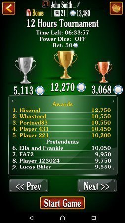 Farkle Dice Game - чтобы заработать на свой счет, определенное число баллов, вам нужно будет бросить кости. Всего их - в наличии имеется шесть штук. Все, что от вас требуется в этой увлекающей игре, так это просто бросить их на стол. Станьте любимчиком Фортуны, дамы изменчивой и капризной. Для этого у вас есть уникальная возможность бросить кости десять раз, не более, в одной игре. Воспользуйтесь этой возможностью по полной. Если вам улыбнется удача, то парные комбинации и кости выпадут несколько раз. Благодаря чему, на ваш счет поступит весомая бальная сумма и вы сможете занять лидирующие позиции в игре. Так же у вас имеется возможность придумать свою умную комбинацию, которая увеличит ваши шансы на победу. Всего в игре - режимов три. Русский язык: нет