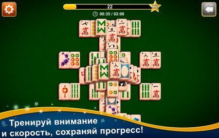 Mahjong Solitaire - Guru – стандартный пасьянс теперь с замечательной графикой и новенькими вариациями самого расклада. Тебе нужно соединять пары фишечек с едиными изображениями, чтобы преодолеть головоломку и набрать максимум себе очков. Еще создатели игрушки предлагают тебе собирать опыт, прокачивать собственный уровень, добиваться достижений и само собой поднимать собственное звание. Преимущества игрушки – удивительный маджонг с крупненькими фишечками, свыше трехсот разнообразных раскладов, отменная игровая механика, свыше пятисот уровней, парочка игровых режимов, отменная графика с высоким уровнем разрешения, музыка атмосферного характера. Игрушка русифицирована.
