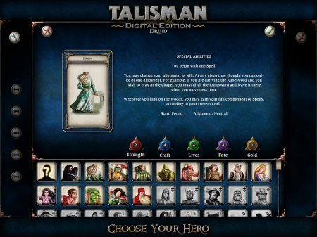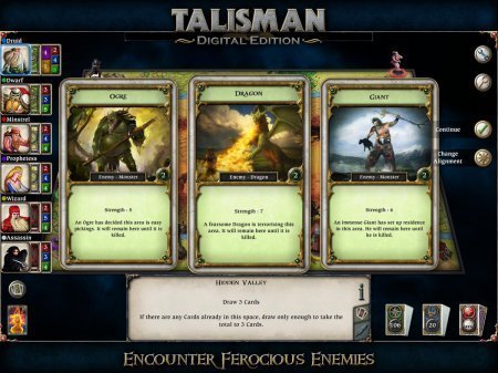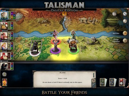 Talisman – игра для любителей настольных игр. Она перенесет вас в мир фантазий. Отправляйтесь в самое опасное путешествие к самому центру Земли, для того чтобы добыть драгоценности и сокровища, а также Корону командования. Игрок может выбирать героев, это может быть от свирепого воина до мудрого мастера, каждый из персонажей имеет свои особенности, навыки, но также и слабые стороны. Отыщите себе друзей и союзников, для того, чтобы легче было бороться с врагами, после этого отправляйтесь в дорогу. Особенностями игры является то, что имеется множество карт, персонажей, мультиплеер локальный, режим онлайн, количество игроков, материал для того, чтобы увеличивать свои способности, таблица рекордов и лидеров. Русский язык: нет. Также требуется Интернет, но лишь для первого запуска игры.