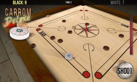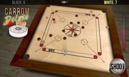 Carrom Deluxe манящая игрушка широко известна в Южной Азии, которая нам напомнит бильярд. В данном проекте твоя цель будет закидывать фишки, в определенные карманы, которые размещены в каждом уголке поля смой игры. Побудит тот игрок, который непосредственно первый закинет все представленные фишки, не обращая внимание на цвет, в кармане. В данную игрушку ты легко можешь играть с товарищами в один момент может играть до четырех человечков в параметре команда, либо как принято против компьютера. Игрушка сохраняет графику формата 3D и игру от первого лица, а еще более качественную физику перемещения фишек. Определи для себя более удобный тебе уровень сложности и насладись всей игрой.