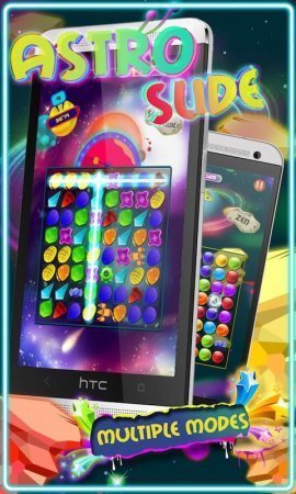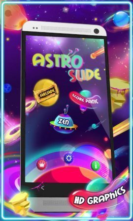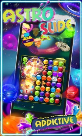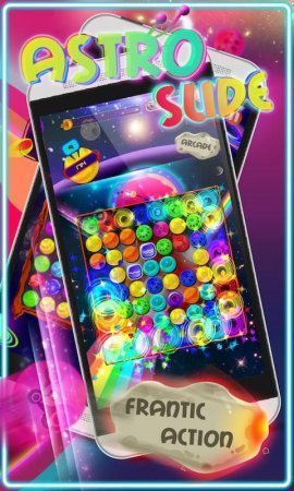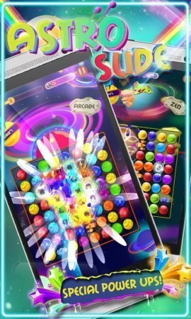 Astro Slide -- привлекательная головоломка на системе андроид по формату три в цепочку. Как всегда, в такого рода играх, тебе нужно копить шары единого окраса. Но данный проект отличается от всех похожих проектов. В ней парочка игровых режимов, и крутая графика с эффектами и очень крутыми эффектами. Такие эффектами ты способен воспользоваться только, собрав нить с конкретной фигурой. Кроме этого тебя ожидает формат на время.