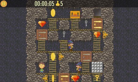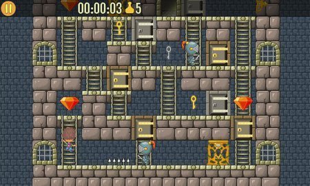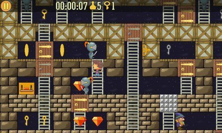 Jack's New Adventures – замечательная приключенческая игрушка на системе андроид, в ней ты будешь помогать Джеку искателю сокровищ, изучать подземелья. В данной игрушке ты с представленным героем игрушки окажетесь в загадочном подземелье, будете изучать старенькие замки, а еще храмы, отыскивая желаемые сокровища. На твоей дороге возникнут массовые преграды и противники, которые само собой будет тебе мешать, изучать представленные помещения. Пройди с персонажем по представленным уровням, передвигая его по лестницам вниз либо вверх уклоняясь от столкновения с зомби, туземцами, рыцарями и прочими противниками. По дороге не пропускай разнообразные усиления и еще бонусы, которые будут помогать твоему персонажу на потеряться в страшных, темных лабиринтах представленного места. Русификации нет.
