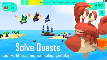 Floaties: Endless Flying Game – интересный раннер на системе андроид, в котором ты будешь руководить одновременно четырьмя персонажами. Твои персонажи летают по разнообразным мирам, и твоя цель состоит в том, чтобы не допустить их столкновения с преградами, которые возникают на пути. Перемещайся по Дикому Западу, космосу, Ютскому периоду и прочим не простым локациям и будь очень осторожен, уклоняясь от аварий. Каждый из четырех героев проекта сохраняет собственный цвет, преграду такого же цвета совершенно не страшны для нашего героя. Стремись проложить дорогу, как только можно дольше в данной игрушке и поставить собственный рекорд. В проекте тебя ожидает восемь удивительных миров, сорок разносторонних героев и легкое руководство. Игрушка не русифицирована.