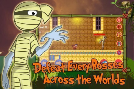 Jungle Hero – красочный стандартный платформер по какой-то причине напоминающий всем полюбившегося усатого трубопроводчика по имени Марио. Вот только вместо него будет выступать азартная обезьяна. Которая копить монетки, перемещается по уровням, уходит от столкновения с противниками и способна обзавестись серьезными динозаврами, разнотипного плана. И если так сказать повезет ты можешь даже полететь на Птерозавре. Разносторонние бонусы и усовершенствования также помогают в преодолении проекта. Преимущества – масса разносторонних уровней и миров. Красочная графика и отменные анимации, не простые противники и мощные главари. Масса орудия и усовершенствований. Бонусные и спрятанные ступени.