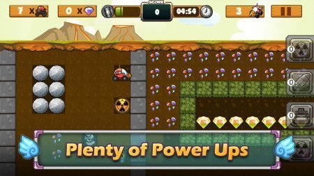 Digger I - Treasure Rush – занимательная аркада на систем андроид, исполненная в тематике Boulder Dash. В данном проекте ты окажешься в подземном царстве, где твоей основной целью будет собрать все алмазики на уровне и устранить конкретное количество противников. В проекте ты возьмешь под собственное руководство маленькую машинку, которой необходимо провести тебя по страшным уровням и обходить всех противников. Твои противники в данном проекте это машинки, устранив которые мы можешь, расположив мины, бомбы, выпустить ракеты либо обвалить на них огромный булыжник. Перечень орудия в данном проекте очень-таки радует и тебе некогда будет грустить, но и противники будет с мозгами и ловкими. Перемещайся по пяти локациям и преодолей свыше сотни уровней, карабкаясь вверх по представленной табличке лидеров и успехов.