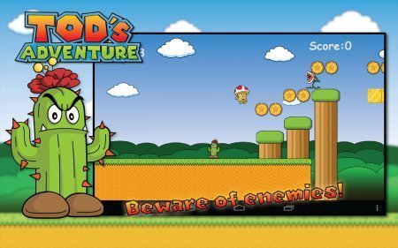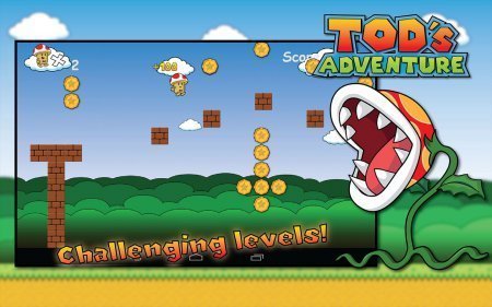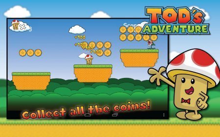 Tod?s Adventure -- тебя ожидает развлечение с приключениями, в которых ты будешь перемещаться, скакая передвигаясь по уровням. Простого дотронься к дисплею и вперед. Если ты столкнешься с противником, то тебе нужно просто мимо него перескочить, и тогда она свергнут. Это занимательная игрушка подходит абсолютно ко всем ступеням возраста -- в нее может играть кто угодно. Тебя ждет масс крутых уровней, крутая графика, оформление звука, стандартный Runner формат игры. Не упусти такую привлекательную игрушку, в которой тебе абсолютно некогда грустить. Она закружит тебя с первого момента и даст сбросить весь негатив за день.