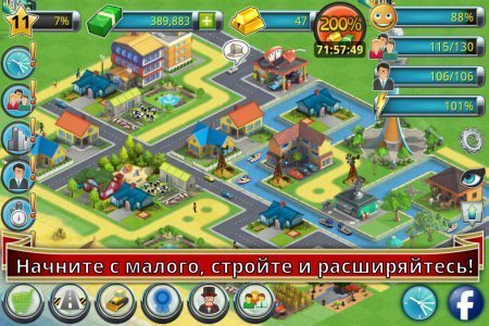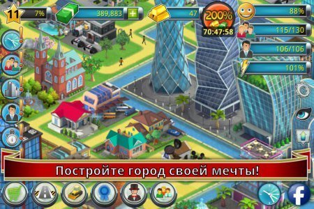 City Island 2 - Building Story – хорошая игрушка на понятную всем систему андроид, в которой ты будешь выстраивать собственный городок и продумывать еще и его инфраструктуру. Строй красивые парки, развивай строительство железной дороги, а еще пешеходные переходы и дороги. А это все для того чтобы заманить людей для еще большего строительство городка. Расширяйся как на суше как еще и на воде и раскрывай для себя непосредственно еще более новые постройки и здания. Преимущества игрушки – геймплей на интуитивном ясном уровне, более ста пятидесяти новеньких, занимательных построек. Собирай поход с существующих зданий коммерческого типа, и не забудь, что нужно улучшать уже построенные постройки. Раскрывай новенькие объекты для постройки, не пропускай различные призы. Еще не забудь поднимать саму скорость строительства. В тоем владении масса различных заданий, а так же приключений, которые тебе придется преодолеть и раскрыть. Еще ты можешь играть не один а соединиться с товарищами на Facebook и весело проводить свободный досуг вместе.