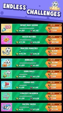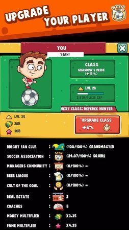 Soccer Simulator – название этой игры не совсем соответствует своей сути, это игра кликер несмотря на то, что в названии звучит слово симулятор. В ней тебе предоставляется возможность стать большим футбольным игроком. Накликивай своему герою побольше денег, получай аплодисменты поклонников и улучшай аспекты приносящие деньги. В какой - то мере это все же симулятор, так как все улучшения разнообразные моменты на поле, это и пенальти, и угловой. Становись известным футбольным игроком, собрав достаточное количество денег и прокачав уровень персонажа.