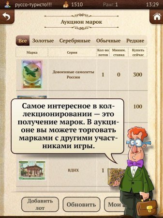 Коллекционер - Суть игры заключается в том, чтобы коллекционировать марки. Но для того чтобы собрать коллекцию нужно непросто покупать нужные раритеты, необходимо их выменивать у других коллекционеров. А также играть в мини-игры и участвовать в профильных выставках. Кроме того, марки можно покупать в специальных наборах по 5 штук, но подобраны они случайно. Раритеты делятся на обыкновенные, золотистые и серебристые. Но самые уникальные и важные – это марки, которые блестят. Еженедельно, когда проходят обновления, добавляют новые серии марок. В игре присутствует русский язык.