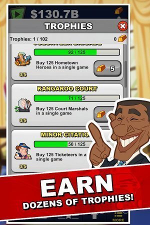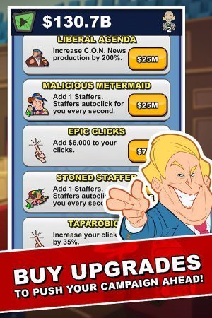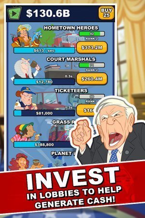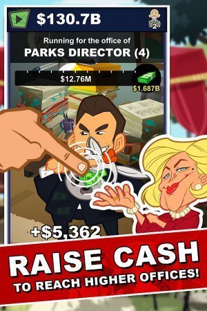 Чтобы как-либо разнообразить свой день с помощью какой-либо игры, достаточно лишь скачать «Pocket Politics», где мы берём на себя роль президента. Цель игры, как и у большинства приложений-кликеров в «Google Play» - просто убить время игрока, заставляя его зарабатывать деньги с помощью нажатий на экран и продвигаться по карьерной лестнице. Но одним нажатием никак не управиться, ведь придётся и помогать простым людям, чтобы получить их поддержку и больше денег. Русский язык отсутствует, а соединение с интернетом для игры не требуется.