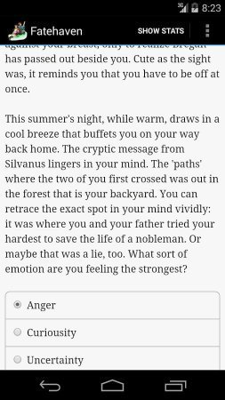 Fatehaven - Захватывающая ролевая игра, в которой можно управлять героем с особым магическим даром. Его ждут романтические отношения, захватывающие приключения, интересные повороты сюжета и отчаянные схватки. Встать на сторону зла или добра? Женским или мужским персонажем будет маг, повелитель четырех стихий? Нелегкий выбор предстоит сделать в самом начале игры, от этого зависит каким, из шести возможных, станет финал. Доступен выбор уровня сложности, перевод на русский отсутствует.