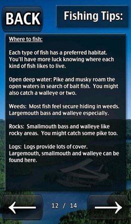 iFishing – это довольно реалистичный симулятор рыбалки на системе андроид. Довольно качественный и проработанный проект. В игрушке сохранено пятнадцать озер, а передвигается между ними можно только на представленной лодке и еще оборудование, и представлено такое оборудование, которое закрепляет рыбные местечки, отменные локации более сорока природных фонов, десяток разновидностей рыб, различные приманки, руководство акселерометром и сенсором, разнообразные игровые режимы от турнирчика к практике, с различные ступеням сложности, управление с подсказками. Игрушка не русифицирована.