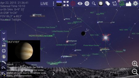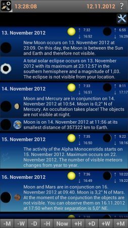 Mobile Observatory Astronomy самая лучшая обсерватория на твоей системе андроид телефоне либо планшете. Получи самые раскрытые данные о шикарных планетах, кометах и самих астероидах и не только об этом. Широкий перечень возможностей может заполнить все твои пробелы в замечательной астрономии и познать кучу неимоверного и фантастического. Игровые приоритеты – совершенно оригинальная карта небес демонстрирует звезды, астероиды и возможные планеты, отдаленные частички космоса, комет в реальные нынешние времена еще активные потоки метеоритов, фактическое расположение всех замечательных планет, самой луны и астероидов Live режима. Календарь демонстрирует точное, верное описание всех видимых явлений небесного формата на дальнейшие тридцать один день. Непосредственно еще продолжительность самого светового денька, красочный каталог звезд там примерно девять тысяч звезд с точными данными о каждой из звезд. А еще сборник Мессье в составе с картинками Caldwell. А еще каталог с метеоритами и их изображениями. Данные о солнечных и лунных темных затмениях, фазу луны. И это еще далеко не весь список ее возможностей. Проект делает автоматическое определение места с мобильника либо благодаря GPS. Определи для себя место из сохраненной базы данных либо же применив Google Maps. Так что остается только пожелать приятного изучения и поглощения информации.