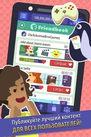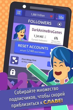 So Social - The Game – кликер проекта на системе андроид, где твоей целью будет стать известным в разносторонних социальных сетях. Разработай собственный профиль, определи красочную аватарку и публикуй разносторонний контент на собственную страничку, получая в результате массу лайков. Превратить в самого известного человека в социальных сетях и получи тысячи поклонников. Выкладывай на собственной страничке посты о тенденциях моды и кулинарии, а еще присоединяй фото и видео с няшными животными и опять-таки принимай уму лайков. Собери самую максимальную известность и раскрой все доступные интересные социальные сети в данном проекте. Жми как можно почаще по дисплею собственного устройства и собирай лайки, получая в результате серьезную славу. Игрушка русифицирована.