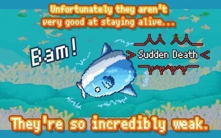 Survive! Mola mola – отменный симулятор на системе андроид, по руководству морской рыбки. В данном проекте ты будешь находиться в страшных морских водах, где тебе необходимо вырастить собственную рыбку и не допустить того чтобы она погибла в пасти рыб большего размера. Но будь очень осторожен, твоя рыбка довольно чувствительна к изменению температуры, выныриванию на сушу и паразитам и может умерить совершенно в любой промежуток времени. Так что не нужно спешить и погружаться очень быстро на морское дно, не подплывай очень близко к суше и устраняй паразитов, которые прицепились к твоей рыбке. Улучшай собственную рыбку и стремись добиться высокого класса в 2.5Т. Игрушка не русифицирована.