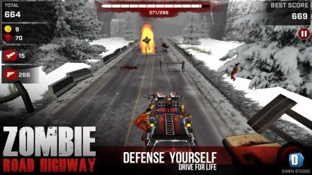 Еще в самом начале развития мобильных устройств начали возникать проекты в которых сохранялись зомби, машины, кучи орудия, погони и стрельба. С проходом времени устройства начали давать возможность запускать довольно требовательные к ресурсам проекты, но зомбики так и не ушли с полосы известных проектов и в настоящее время это уже как такого рода классика времени. Zombie Road Highway – красочный представитель зомбиков на машиных экшенов, хотя ничего нового тебе в данном проекте не предстоит увидеть. Линия сюжета развивается после того как в результате не очень достойного эксперимента на волю вышел смертоносный вирус. Который производил мутацию и народ становился мертвецами, и в результате зомби начали быть везде. Тебе же как одному из тех, кто выжил нужно серьезно вооружиться и остерегать транспорт и стремиться выбраться из центра непосредственного заражения. Проект не русифицирован.