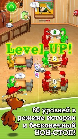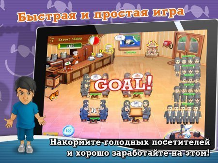 Обеденный переполох на андроид научит вас управлять ресторанным комплексом во время аврала, начинающегося утром или после обеда. Приоритет новоиспеченного ресторатора – добиться звания, причём мирового, не регионального уровня. Принимайте ответственность, выполняйте задания, устраивайте банкеты, фуршеты, пенные вечеринки. Удовлетворяйте индивидуальные пожелания посетителей, какими-бы взыскательными они не казались. Проявляйте заботу, любовь, искренность. Особое внимание уделяйте предпринимателям, посещающим ресторан в период бизнес-ланча. Добейтесь успеха, получите признание со стороны предприимчивых бизнесменов, управляющих развлекательными заведениями.