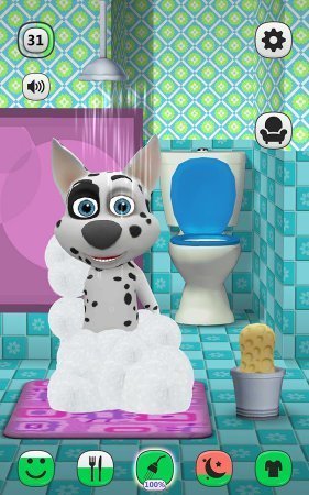 My Talking Dog – виртуальный питомец на андроид, повторяющий каждое действие владельца смартфона. Обзаведитесь четвероногим дружком, если обожаете собак. Общайтесь с мультяшным героем, проявляя тепло, заботу и ласку. Будьте внимательны, не грубите, учите питомца новым словам и действиям в интегрированных игрушках mini класса. Приложение отлично развивает логику, память, когнитивные способности мозга. Выдуманный разработчиком четвероногий товарищ всегда готов к дружественному контакту, слушается своего педагога, не пререкается, проявляет ответное уважение. Советую скачать анонсируемый развлекательный продукт в целях повышения интеллекта, для развития навыков учительства и психологии.