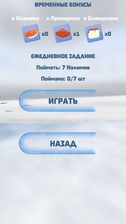 Winter Fishing 2015 – очень-таки реалистичный симулятор холодной рыбалки на системе андроид. В данном проекте тебе нужно выйти на указанный лед и ловить рыбку, применяя для этого разнообразные бонусы, которые ты будешь получать за качественно преодоленные уровни. Помни то что на каждой лунке рыбка клюет по иначе, если ты не можешь ничего словить поменяй лунку. Примени разнообразные наживки для того чтобы словить рыбку. В проекте предложено три типа бонусов – амуниция которая даст тебе собрать добычу с крючка, прикорм, который поднимет число поклевов, и наживка сохраняет два эти бонуса, но в более малой степени. Играй в данный проект и пожелаем тебе хорошего клева.
