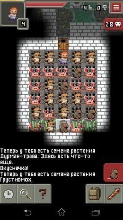 Pixel Dungeon – одно из достойных ролевок на базе андроид исполнена в под жанре rogue-like, но в силу предельно не простого геймплея и широких диалогов текстового формата на шикарном английском которое имеет достаточно не широкое расширение между русских геймеров и замечательно популярная только среди любителей жанра. Для тех, кто не знает rogue-like нужно сказать, что это одно из веток РПГ знакомыми чертами которого выступает случайно представленные уровни, с пиксельной графикой и неуклонность смерти героя, это значит, что после смерти тебе необходимо будет все начать заново. Remixed Pixel Dungeon – более облегченная версия стандартной игрушки, при всем при этом она оставила все центральные элементы, но основным достижением ремейка выступает поддержание русского языка, что даст возможность всем ощутить себя реальным искателем интересных приключений, а не только тем кто любит данный жанр.