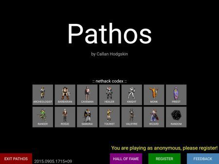 Pathos: Nethack Codex – интересная постепенная игрушка на платформе андроид, в которой ты будешь помогать центральному персонажу изучать темные подземелья и отыскивать сокровища. Все представленные подземелья соединены большим перечнем коридоров и еще лабиринтов в которых на каждом шагу тебя будет подсиживать противник, ловушки и злобные монстрики. Проложи себе дорогу сквозь подземелья, хорошенько обдумывая каждый собственный шаг. Каждый персонаж данной игрушки сохраняет личные способности, которыми ты можешь воспользоваться для противостояния с противником, а еще примени магию и массу предметов которые ты отыщешь в подземном мире. Подними все сокровища, которые попадут тебе на дороге и вернись с важной добычей.