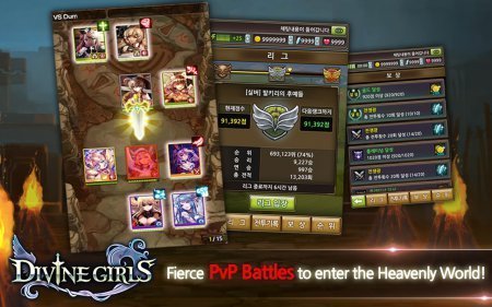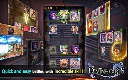 Divine Girls – интересная карточная игрушка РПГ на базе андроид от группы профессионалов com2us. В игрушке тебя ждет постоянное сражение между злом и добром. Тебе необходимо переломить чашу равновесия, и вынудить одной стороне преобладать над второй. Всего в игре приготовлено свыше трехсот героев, которых ты можешь раскрыть и улучшать. Еще игрушка насыщена красочными локациями, а еще темными подземельями. Если ты любишь поиграть против существующих противников тогда милости просим в замечательный режим PvP. Игрушка не русифицирована.