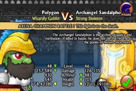 Когда-либо желал превратиться в настоящего сильного гладиатора. Почувствовать весь смак противостояния на арене. Можно сказать, с широким ассортиментом игр, которые выходили на ПК это была не проблема. Одной из таких известных флэш игр выступает Меч и сандали, которая имеет неимоверную известность. Теперь у тебя есть шанс приблизится к миру гладиаторов и на любимых андроид устройствах. Как принято тебе в начале необходимо принять форму, выучить и понять парочку десятков ударов, сотни их правил, научиться владеть разнообразными типами орудия и еще понять азы магии. После этого уже можно и испытать собственные силы на представленной арене. Каждое противостояние будет давать тебе деньги, опыт и мощь, славу, а еще в результате ты можешь быть очень известным из гладиаторов. Игрушка не русифицирована.