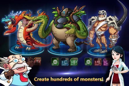 Monster Builder: Craft, Defend – данный мир атакуют страшные монстры и твоя цель разработать серьёзных и устраняющих монстров чтобы преодолеть противника. Набери собственную армию монстров и отправь их в противостояние, устранять толпы вражеских врагов. Разработай в собственной лаборатории разнообразные типы монстров и проведи неимоверные эксперименты по соединению типов. После преодоления противника поднимай важные частички ДНК и используй их в собственных опытах, получая неимоверные виды очень мощных монстров. Каждый опыт полученный в результате опыта будет иметь удивительные навыки и знания, которые нужно применять в противостоянии и еще построй собственную тактику ведения боя. Игрушка не русифицирована.