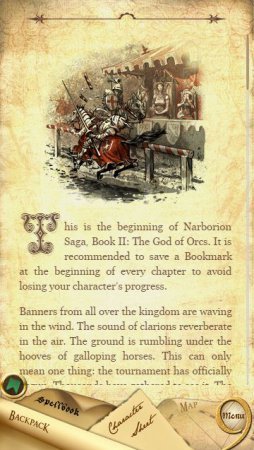 Narborion 2: The God of Orcs – занимательный проект с интригующими постепенными действиями и фантастическим сюжетом. В данном проекте твой персонаж проследует в страшное перемещение, для того чтобы познать заговор орков и найти их армию. Данная игрушка принесет эмоции подвижным сюжетом где ты будешь продерутся по представленным лесным гущам, изучая не малые постройки и в результате встретишься с главарём орков и будешь сними бороться. Тебя ожидает примерно пятьдесят автономных сражений, разноплановые загадки, анаграммы, тайные коды и разносторонние небольшие игры. Постепенно ты будешь улучшат собственного персонажа, давая ему больше силы и выносливости, а еще готовить и торговать орудием и принимать новенькие заклятия и эффекты.