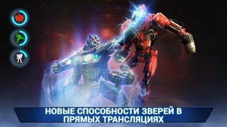 Скачать игру Real Steel Champions на андроид – начать работу по модернизации подопечного в стенах специально отведенного комплекса. Изначальный этап усовершенствования включает в себя индивидуальный подбор боевых принадлежностей, аксессуаров. Далее вам предстоит выбрать цвет корпусной бронированной оболочки, желательно подпадающей под профессиональную маскировку типа хаки. Третья стадия модификации – этап технологической подготовки железного монстра к опасным схваткам с угрозой летального исхода.