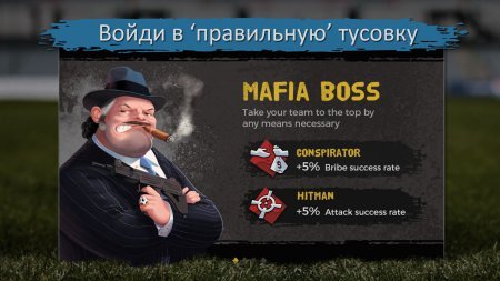Underworld Football Manager - У игрока появляется спортивный клуб. Он провинциальный и не выигрывает ни в каких состязаниях. Мало тренеров, неквалифицированный состав игроков и плохое место для тренировок. В процессе игры необходимо развивать футбольный клуб. Покупать новых игроков, назначать новых тренеров, строить стадионы. В общем, делать всё, чтобы команда стала лучшей. Этого можно достичь по-разному. Можно просто тренировать игроков. А можно ещё действовать нечестно. Например, подкупить судью, можно делать ставки против других клубов и многое другое. Повышая уровень футбольной команды нужно параллельно развивать город и следить, чтобы не пострадать от происков других менеджеров. Для игры –требуется интернет.