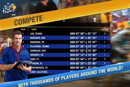 Tour de France 2016 - The Game – это продолжение оригинальной версии игры. В новой части вы найдете много нового, например, карьера. Множество различных соревнований. Для участия в предстоящих гонках, соберем команду. Собрав команду обучите ее участников, улучшите их характеристики. Только после этого можно начинает свое восхождение по рейтингу вверх. Перед вами открываются новые трассы – их более 30. А также более 150 гонщиков. Очень серьезные противники. Требуется выход в Интернет. Усовершенствованные награды за достижения. Дави на газ… Игра не переведена на русский язык.