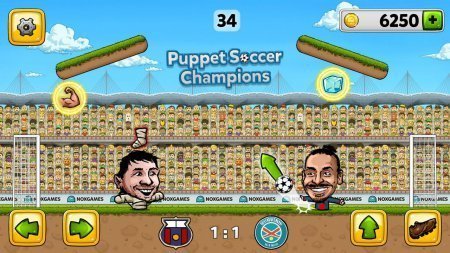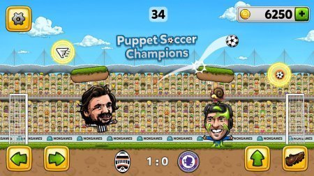 В игре Puppet Soccer Champions - можно попробовать себя в качестве вратаря футбольной команды. Игрок может выбрать любого из представленных знаменитых футболистов и собрать свою команду. Главное, сделать всё, чтобы ваша команда выиграла чемпионат, а противники не забили вам гол. Для этого можно разлить по футбольному полю клей или покрыть его льдом. Естественно, это сильно усложнит задачу соперников. Если станет скучно сражаться с компьютером, то можно затеять соревнования с друзьями. Есть даже возможность поиграть на одном устройстве нескольким друзьям, разделив поле. Если вы решили сразиться один на один, то нужно помнить, что ко забил больше – тот и побеждает. В игре использованы знаменитые команды мирового футбола, а футболисты внешне похожи на настоящих звёзд футбола. Русский язык: да.
