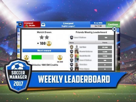Soccer Manager 2016 – интересная спортивная игрушка на системе андроид, в которой ты будешь контролировать хороший футбольный клуб. В данной игрушке ты будешь владельцем, а еще тренером команды футбольного типа, которую тебе необходимо приблизить к победе в самом важном чемпионате не просто так, а мира. Покупай самых лучших игроков для выбранной команды и построй тактику и этапы тренировок, которые сделают твою группу более сильной и мощной. Приходи к победе в разносторонних турнирах и повысь рейтинг собственной команды, достигая желаемого результата. Играй против не менее сильных команд и поберись к самому важному и ответственному чемпионату мира как ты уже понимаешь по футболу. Окажись на самом верху в лидерской табличке и играйся с пользователями с различных городков и стран.