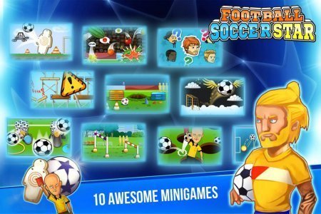 Football Soccer Star – интересная спортивная игрушка на платформе андроид, в которой ты будешь проверять данного футболиста на его меткость, исполняя разносторонние трюки. Выбери для себя футболиста, подбирая непосредственно для него форму и изменяя его внешний облик. В данной игрушке тебя ожидает десяток занимательных мини игрушек, которые на практике проверят твою меткость, мощь и выносливость. Выполни точные удары по указанным воротам, обходи все преграды и принимай за это денежки. Скачи сквозь преграды и ни при каких обстоятельствах не останавливайся. На собранные денежки ты полностью способен изменить внешний облик данного героя, прибавим ему усики или бородку. Стремись заполучить свыше тридцати достижений, двенадцать трофеев и заполучить для себя славу самого лучшего игрока в футболе. Игрушка не русифицирована.