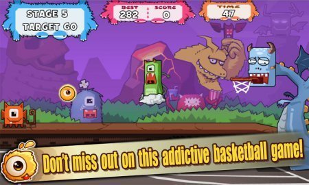 Монстрический баскетбол на Андроиде Monster Basketball не оставит равнодушным никого! Многочисленные спортивные и веселые монстры различных видов готовы играть с Вами. Интуитивное, понятное управление ориентировано на игроков всех возрастов. Интересная и уникальная, по своему оформлению, игра. При относительно простой графике, разнообразие персонажей присутствует в каждой смене игроков, а также, и на игровом поле. Даже мячи и корзины имеют вид монстров. Нет русского языка.