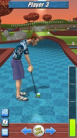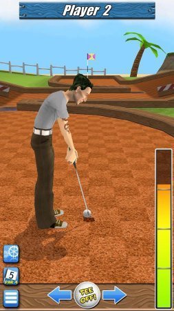 My Golf 3D – превосходный мини гольф на вашем смартфоне. Особенностью является то, что вы можете выбирать себе героя. Вступайте в клубы, играйте на чемпионатах. Всего 27невероятных уровней. Также вас порадует четкость качество, реалистичность, физика, которая круто повторяет движения мячика. Еще имеется пять уровней сложности, для новичков и все сложнее и труднее. Зарабатывайте очки, получайте достижения, будьте лучшими в своем деле. Русский язык: неизвестно.