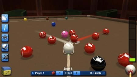 Pro Snooker 2015 – игра стала самой реалистичных игр snooker. Играя, любой человек будет спокоен и уверен в своих силах, все благодаря нескольким режимам в игре. Когда игрок только начинает, ему нужно включить режим новичка, тренироваться и набираться опыта. Но, а если вы уже имеете опыт, то режим профи для вас. Далее вы сможете участвовать во всемирном турнире. Особенностями являются: четкая графика, несколько режимов, рекордные таблицы. Русский язык: нет. Для игры требуется Интернет.