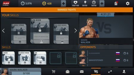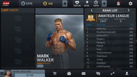 M1 Manager – интересный спортивный менеджер на системе андроид, в которой ты будешь отыскивать подающих надежды бойцов, и приходить с ними на верх славы. Эта игрушка многопользовательского спортивного типа, в которой ты будешь заниматься тренировкой и непосредственно самими бойцами, чтобы прийти к самым высоким достижениям и приведи их к победе. Подбери для собственных бойцов неимоверные, лучшие методы тренировки, а еще установить фирменный стиль, который будет очень выделять их от прочих бойцов. Кинь вызов самым сильный бойцам и подними их непосредственный уровень до самого большего возможного М1. Еще принимай участие в нелегальных боях, поднимая тем самым выносливость собственного бойца и предоставляя ему возможность заработать денежки, славу и уважение в собственном окружении. Игрушка русифицирована.