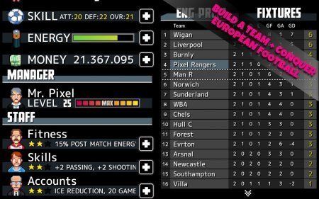 Tiki Taka Soccer – занимательная футбольная игрушка с шикарным сенсорным руководством на базе андроид. В представленном проекте твоей основной целью будет разработать собственную команду для футбола и привести ее к желаемой победе на основном состязании мира. Собери в собственной группе мега сильных игроков, тренируй их и учи, перед тем как они окажутся на игровом поле. Руководи одновременно парочкой игроков и нарисуй траекторию их непосредственного перемещения и самого мяча. Забивай постоянно мячи в сопернические ворота и поднимись выше на ступень в лидерской табличке. Заработай необходимое количество денежек, чтобы купить себе в группу новеньких игроков и непосредственно нанять шикарного тренера, умного бухгалтера, а еще ответственного фитнес тренера и повысить уровень команды на новый этап. Игрушка не русифицирована.