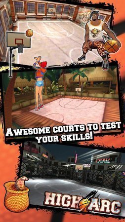 High Arc – возьми в руки мяч и бросай его в баскетбольное колечко, накапливая баллы. Тренируйся забрасывая мячи в данном проекте, проводя по дисплею собственного устройства рисуя расположение полета представленного мяча. Забрось в кольцо мяч без всяких промахов и прими вознаграждение. Исполни указанные задания и подними уровень броска, забрасывая мяч из различных позиций поля. Еще стремись бросать мяч в кольцо, но при этом не пропуская размещенные в воздухе денежки. Собери достойный перечень очков и раскрой иных героев проекта. Проверь собственные силы в различных режимах проекта, соперничая с товарищами либо совершенно случайными пользователями с различных уголков мира. Игрушка не русифицирована.