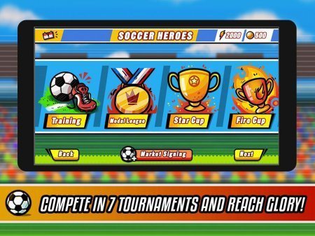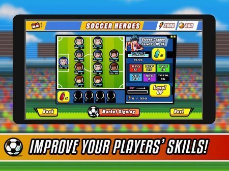 Soccer Heroes - Road to Brazil – восхитительный аркадный футбол на платформе андроид. Тебе важно принять непосредственное участие в великом чемпионате великого мирового мира, который происходит в Бразилии. Набери собственную команду, размести игроков по позициям и начни противостояние за одну из знаменитых кубков мира. В проекте красочная графика мультяшного плана, которая может поднять настроение любым пользователям. Проект не имеет русификации.