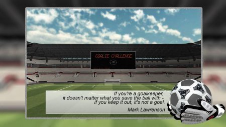 Goalie Challenge -- играй в футбол, теперь и в облике того от которого полностью зависит судьба всего матча. Шикарный шанс испытать себя в облике вратаря профи. Отрази как можно больше мячей и старайся не упустить гол в собственные же ворота. Выступи самым классным голкипером и стань во главе лидерской таблички. Преимущества -- простоя система руководство, ведущая табличка, разные варианты отразить мяч, противостояние с товарищами.
