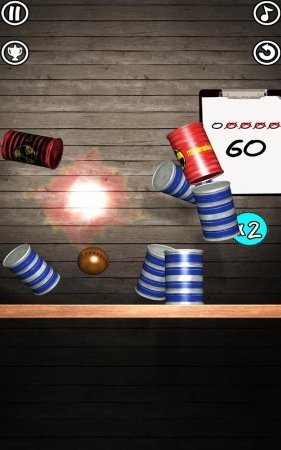 Tin Shot -- данная игрушка оказалась в разряде спортивных игр для системы андроид не случайно. Так как тут необходима сноровка, собранность, внимательность и сильное желание победить, и совсем чуть не забыли про выдержку. Так вот кидай мяч по мишеням. В облике которые предложены банки, деревянные фигурки и не только. Три игровые режима, шанс игры с товарищами. Пролетающие мишени и твоя изобретательность в бросках принесет кучу позитивных эмоций. Игрушка направлена на любой возраст -- от старого к малому. Не сохраняет русификации.