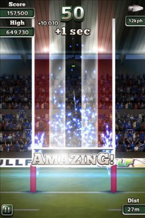 Flick Nations Rugby -- предельно реалистичный имитатор проекта американский футбол на платформе андроид и предлагает сотворить решающий бросок по представленным воротам. В самом начале это тренировки. Не нужно их игнорировать, даже если ты асс ы игре в настоящей жизни либо любитель, а тем более если ты ранее никогда не играл в американский футбол. Когда набьешь руку, а конкретнее пальчик -- тогда уже можно будет выбрать и одну из пятнадцати стран, флаг, честь которой ты желаешь представить -- это и Австралия, Италия, Англия, Франция, Уэльс и не только такие города. Каждый следующий уровень проекта даст собственные сюрпризы -- в каком-то нужно собрать максимальный перечень баллов, отправляя мяч в необходимые участки, которые представлены различными цветами, в ином -- выбирать все представленные зоны и не только. Твоя главная цель -- попасть в предложенные ворота с максимальной точностью. В воротах как уже можно было понять есть пять зон, каждая из них несет точное количество баллов. Центральная территория самая прибыльная в очках. Сложность проекта начинает подниматься, когда возникает боковые силы ветра и траекторию полета мячика приходиться корректировать с применением кручения в полете. Игрушка имеет крутую графику с высоким уровнем расширением.