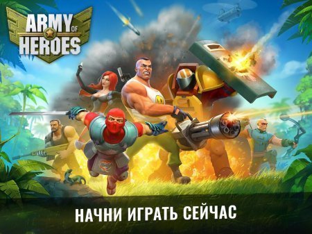 Army of Heroes – превратись в истинного революционера в данной игре на базу андроид, и убери диктатора который заполучил власть в стране тропического типа. Твоей главной миссией будет разработать личный пост военного типа и сделать его большущей базой. Набери личных армию персонажей, которая будет состоять из страшных наемников – ученого, невменяемого пулеметчика, отважного снайпера и прочих, высаживайся на безе соперника, применив вертолеты, грузовики и еще катера. Стать довольно опытным главным и целиком прими контроль за совей армией, стараясь изменять цели для нападений. Создай свою тактическую базу боя с с запретными приемщиками к примеру – бомбежку криобомбами, рассылка листовок пропагандистского типа. Заполучай главные постройки в городе это – и аэропорты, больницы, мощные вышки с нефтью, лаборатории и ставь свои правила для остальных. Не отказывайся от помощи товарищей борись с ними за одно а не против.