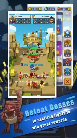 Pixel Guardians-Auto Fight – игрушка которую достаточно сложно отнести к конкретному виду жанру, в ней есть частички стратегии, аркады а так же ролевки и известное направление на нынешнее время кликер. Такого рода сборная дает геймплею разносторонности и изюминки. Начнем по порядку, все происходящее происходит в кубическом мирке, твоя цель набрать армию воинов, и само собой хорошо их потренировать, снарядить и уж только после этого поставить на сражение. Противостояние происходит при помощи игрока, твоя цель как можно шустрее касаться дисплея, и таким образом наносятся удары по врагу. Соединение таких видов жанра и отменной графической стилистики должно покорить многих если не всех пользователей.