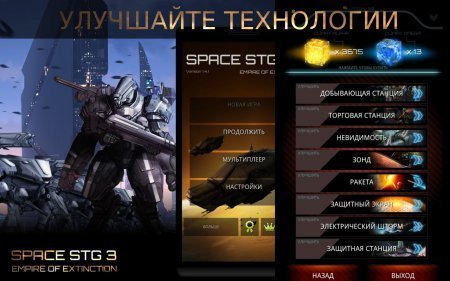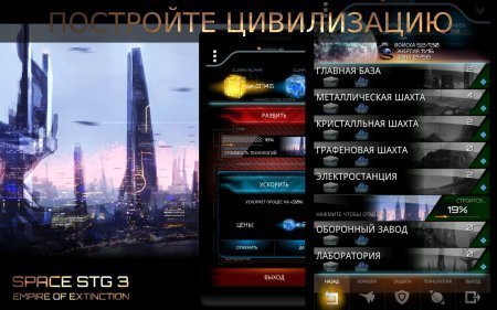 Space STG 3 - Стратегия – одна из многих игрушек, облика стратегии в нынешнем времени. Линия сюжета происходит в незнакомом будущем, в котором люди развиваются и стояться в просторах космоса. На желание денег и власти так и не ушло с первого плана. Человечество начала расходиться на небольшие кланы, которые борются один с другим. Тебе поступило предложение выстроить собственную базу космического типа, улучшать ее, заполучить боем либо колонизировать прочие планеты и поднимать технологии будущего. О основных игровых блоках – центральная база она дает конкретное количество для населения. Чем сильнее ступень самого здания, тем больше людей там может находиться. Каждый кораблик и непосредственно защитный юнит нуждается в людях. Металлическая шахта – она отвечает за добычу важного метала. Шахта с кристаликами – она выпускает замечательные минералы кристаллов. Графеновая шахта – она добывает и обеспечивает всех графеном. А еще Электростанция – само собой обеспечивает всех энергией. Если у тебя будет не хватать на планете энергии т тогда все твои строительства будут предельно замедлены. Верфь – дает шанс приобретения космических корабликов. С каждым дальнейшим уровнем поднимается скорость самой постройки юнитов. А еще есть Защитное строение – она дает способность строения масштабной защите. Ценная Лаборатория –изучает и делает лучше все технологии планеты. Дает шанс в приобретении технологий. Игрушка русифицирована.